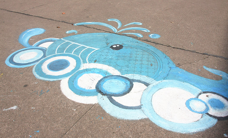 (陶慧 何俊强 郭鹏)5月27日,记者在校园里看到,原来灰色的30多块井盖被各种涂鸦打扮得格外靓丽,“校园全貌”、“喷水大鲸”、“疯狂青蛙”……一个个油彩涂出的“很有爱”的卡通形象,成了校园一道独特的风景线。